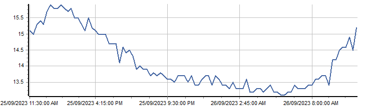 | 19 Sep 2023 13:15 | 15.699999 °C | |||||||||||||||