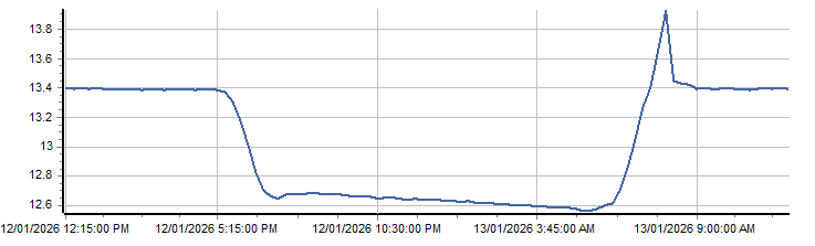 | PROVISIONAL WATER INFORMATION Site: 419064-Rossmore HS2 - Battery Volts Report generated: 13 Jan 2026 @ 10:10 AEST | ||||||||||||||||