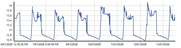 | PROVISIONAL WATER INFORMATION Site: 419073-Appleby Xing - Battery Volts Report generated: 13 Jan 2026 @ 10:31 AEST | ||||||||||||||||