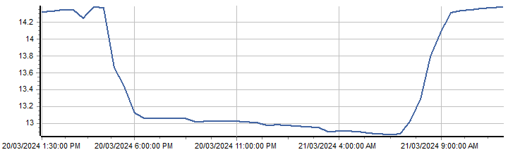 | PROVISIONAL WATER INFORMATION Site: 421107-Billybingbone - Battery Volts Report generated: 21 Mar 2024 @ 12:05 AEST | ||||||||||||||||