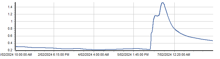 | PROVISIONAL WATER INFORMATION Site: 213011-Orange Grove - River Level m Report generated: 08 Feb 2024 @ 08:52 AEST | ||||||||||||||||