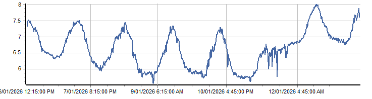 | PROVISIONAL WATER INFORMATION Site: 212011-Lyell DS - Dissolved Oxygen Conc Report generated: 13 Jan 2026 @ 10:23 AEST | ||||||||||||||||
