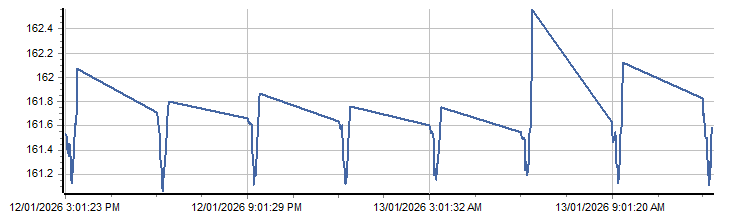 | 13 Jan 2026 00:05 | 161.57 uS/cm | |||||||||||||||