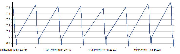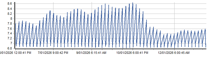 | PROVISIONAL WATER INFORMATION Site: WQ420115 - Lake Oberon at Dam Wall VPS - pH Report generated: 13 Jan 2026 @ 09:59 AEST | ||||||||||||||||